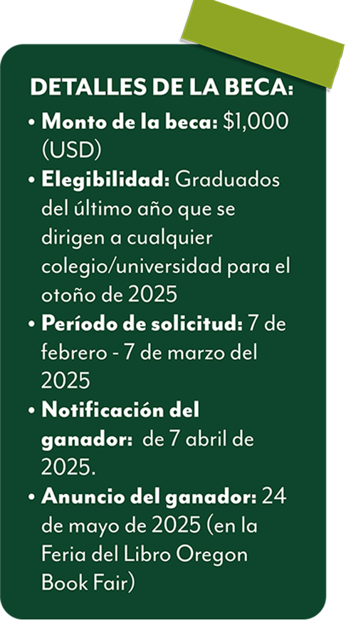 Esta beca presenta una oportunidad increíble para aliviar algunas de las cargas financieras asociadas con la educación superior. El destinatario no solo recibirá apoyo financiero, sino que también tendrá la oportunidad de mostrar su gratitud y aspiraciones en la Feria del Libro Oregon Book Fair.